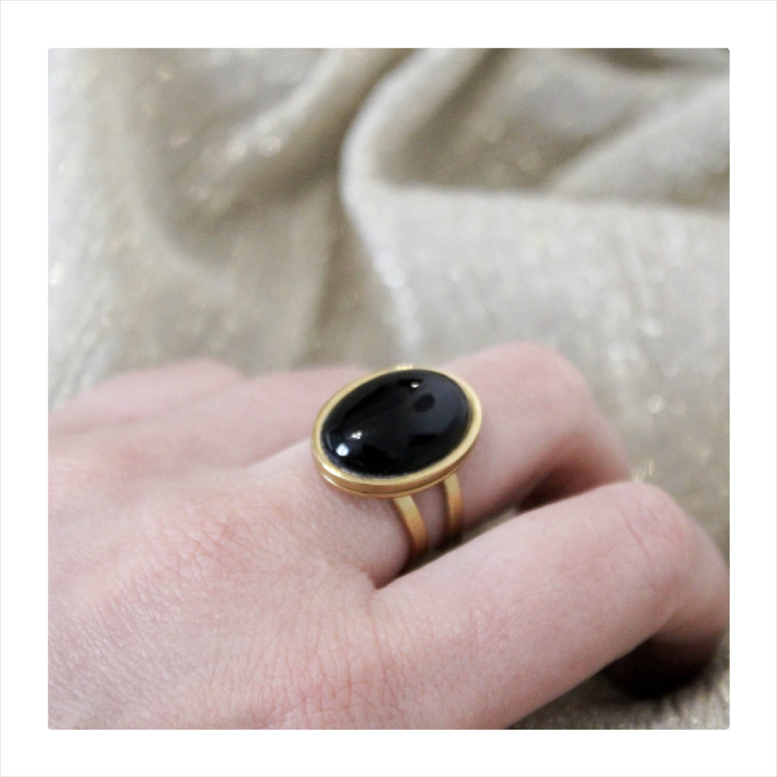 Une bague moderne agrémentée dune jolie pierre naturelle, l’Onyx.