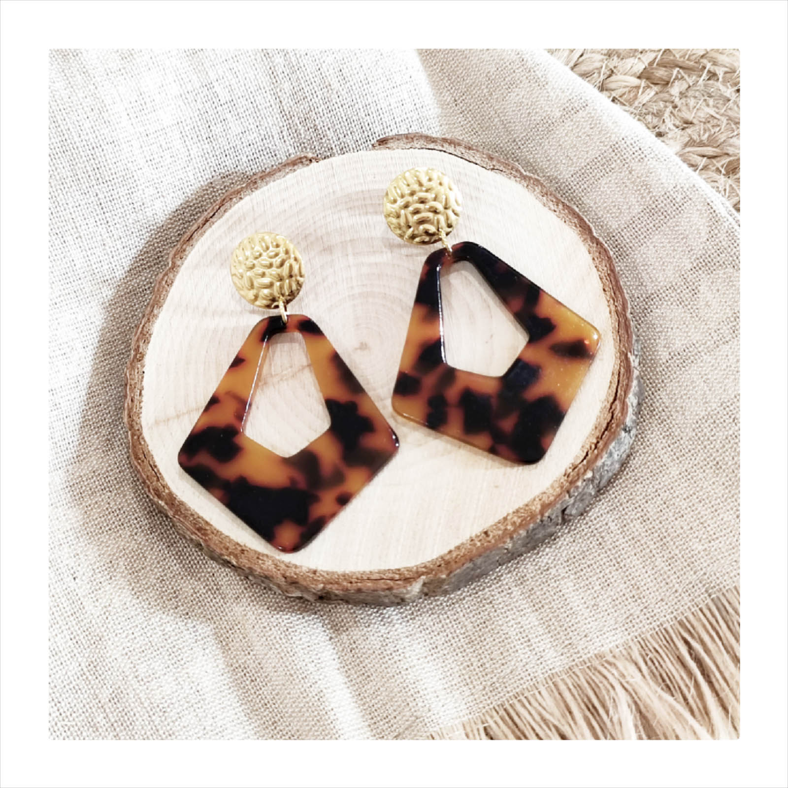 ⭐︎ Boucles d’oreilles acier inoxydable ⭐︎ Hauteur totale : 6,5 cm ⭐︎ Résine écaille ⭐︎ Couleur doré