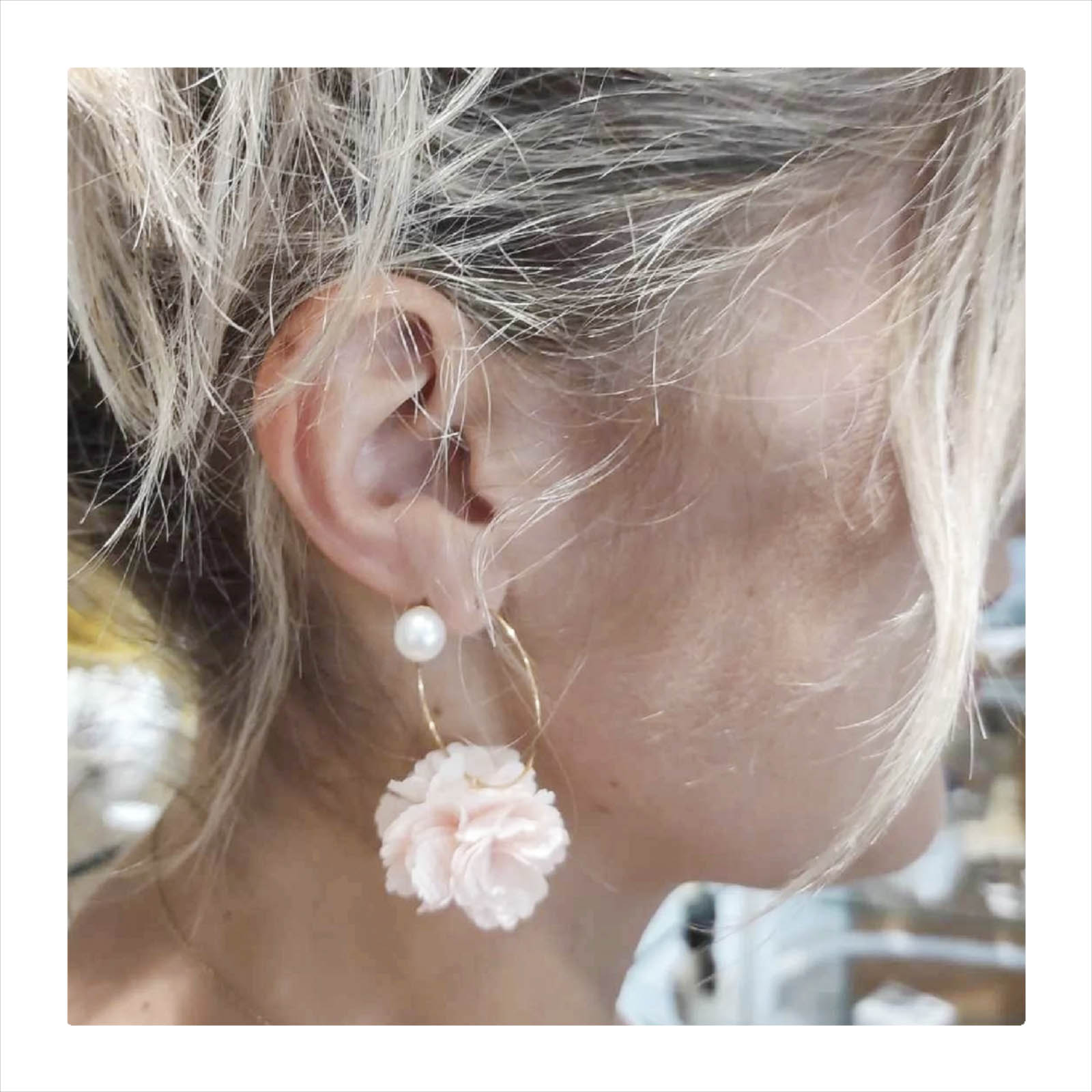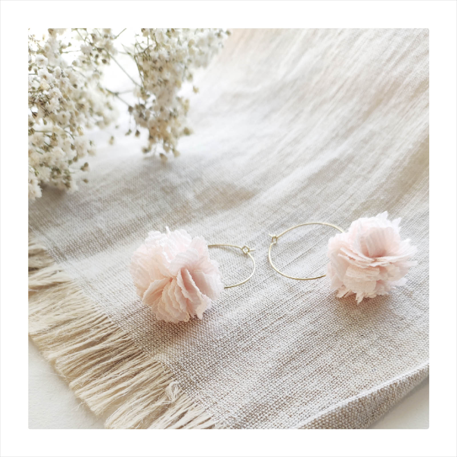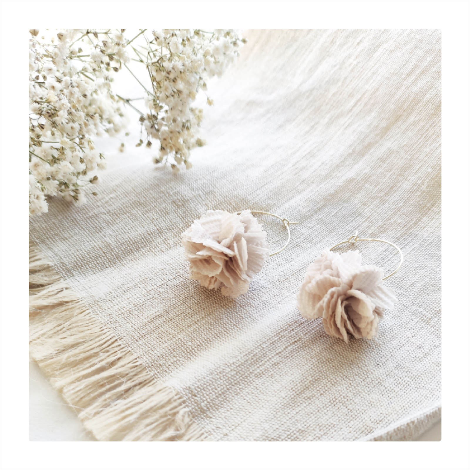 Un modèle sobre et intemporel. De jolies fleurs en tissu montées sur créoles.