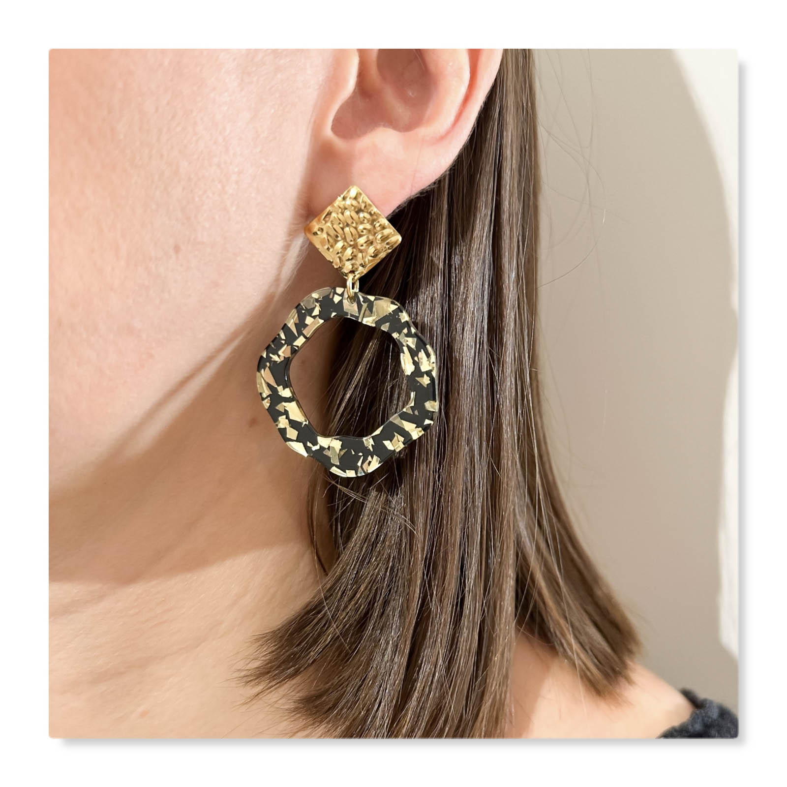 ⭐︎ boucles d’oreilles acier inoxydable ⭐︎ Hauteur totale : 5,5 cm ⭐︎ Résine ⭐︎ Couleur doré