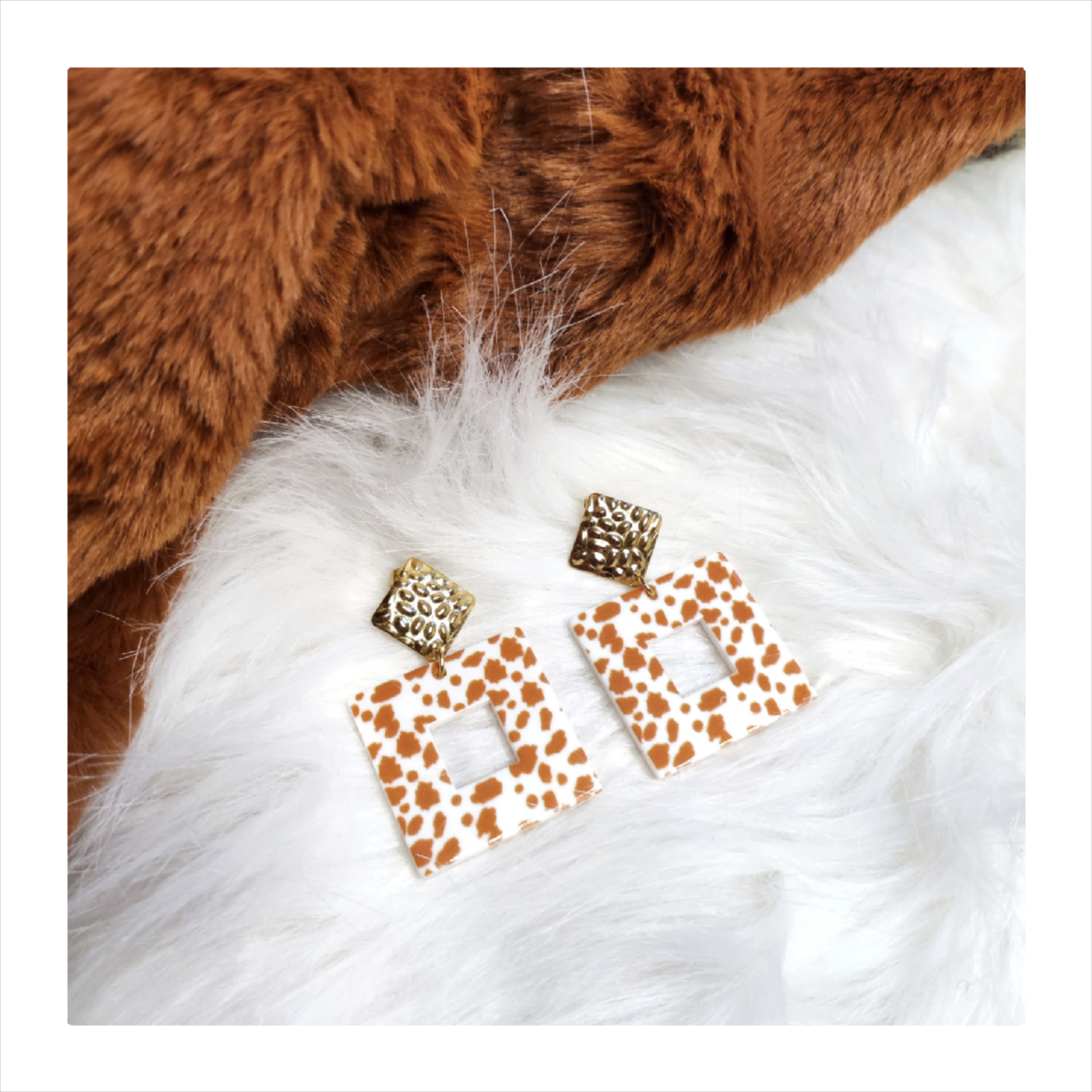 ⭐︎ boucles d’oreilles acier inoxydable + résine ⭐︎ Hauteur totale : 5 cm ⭐︎ Couleur doré