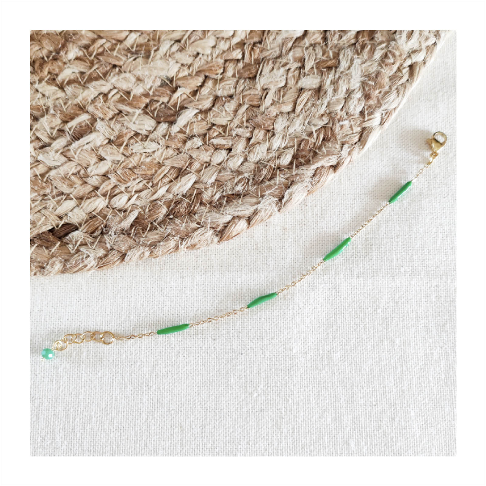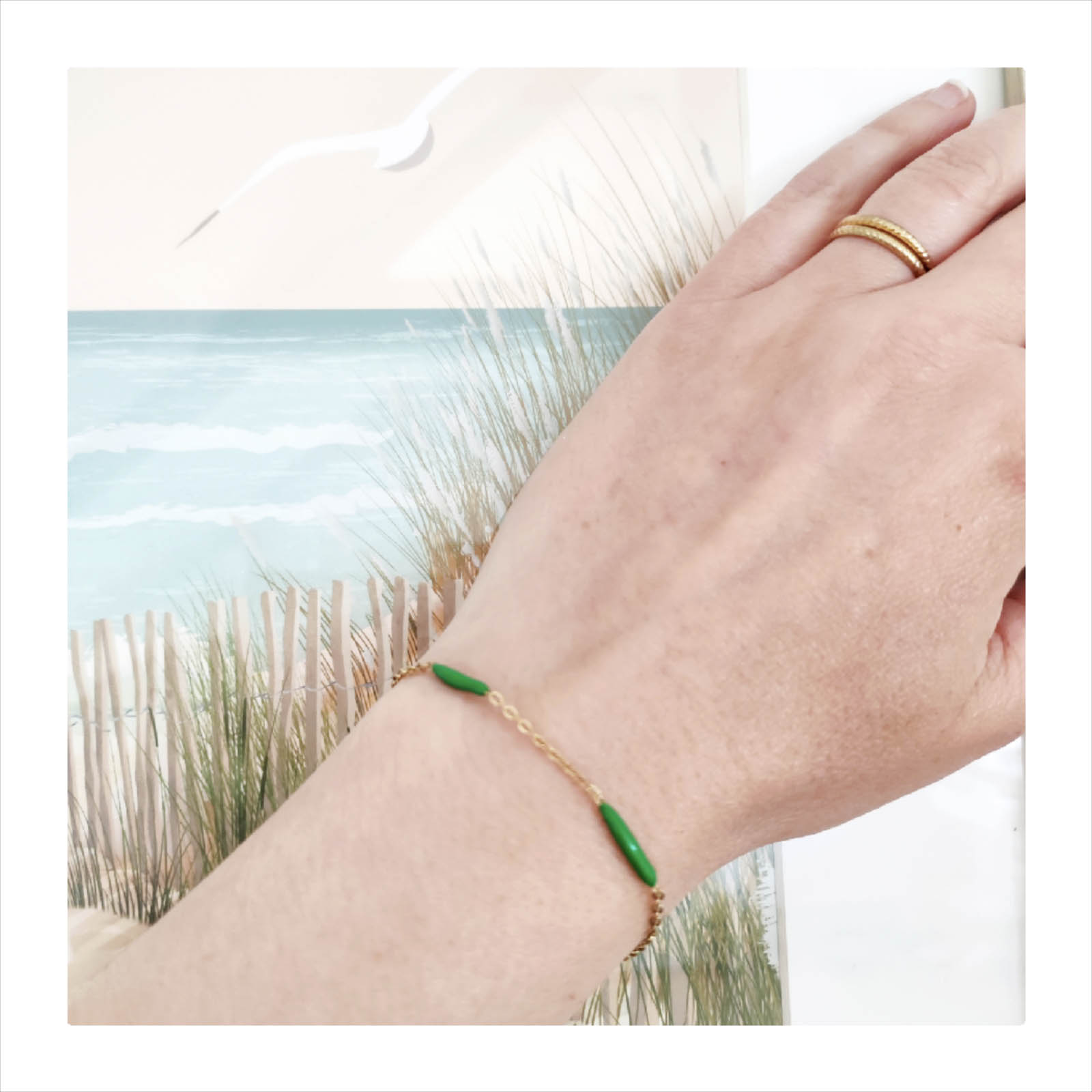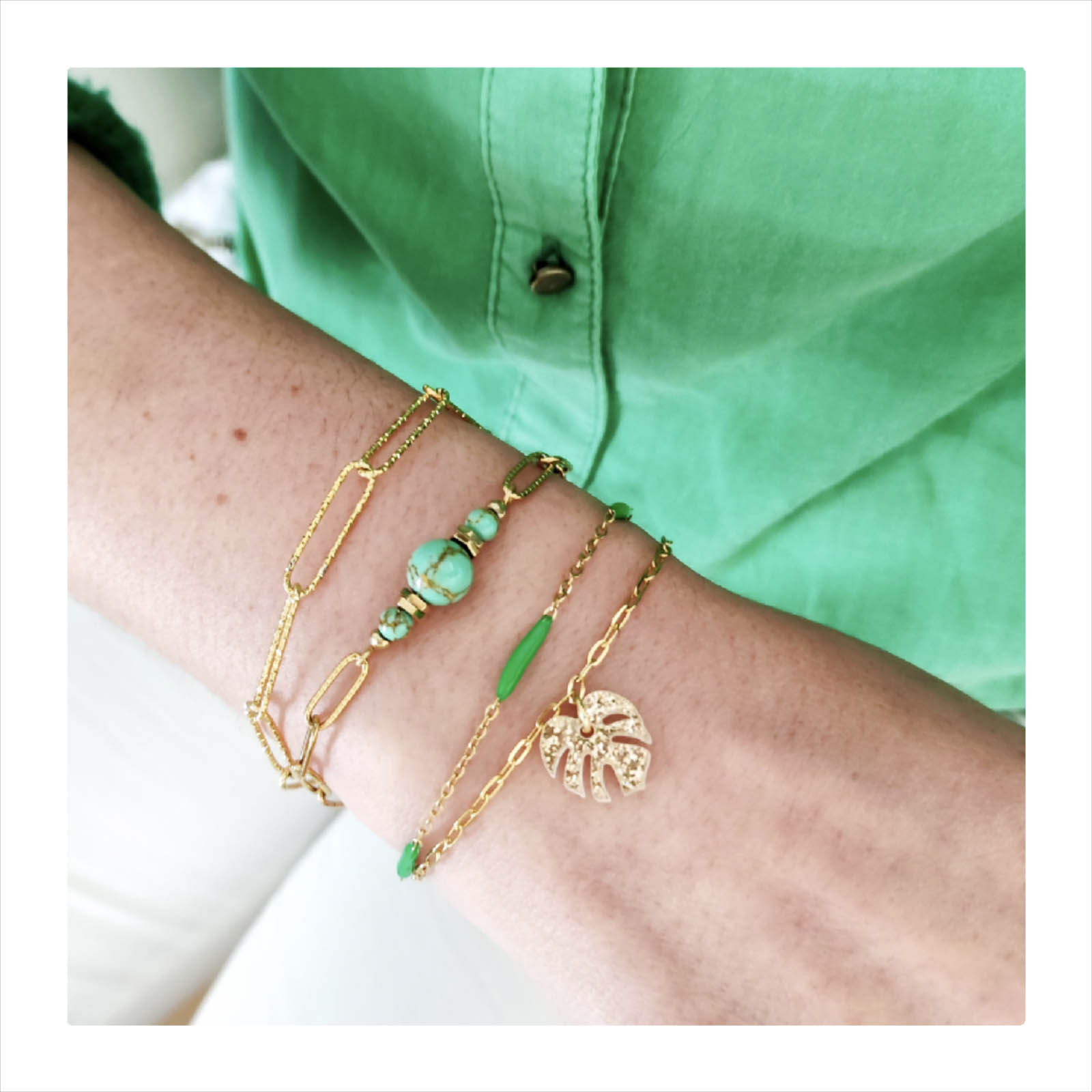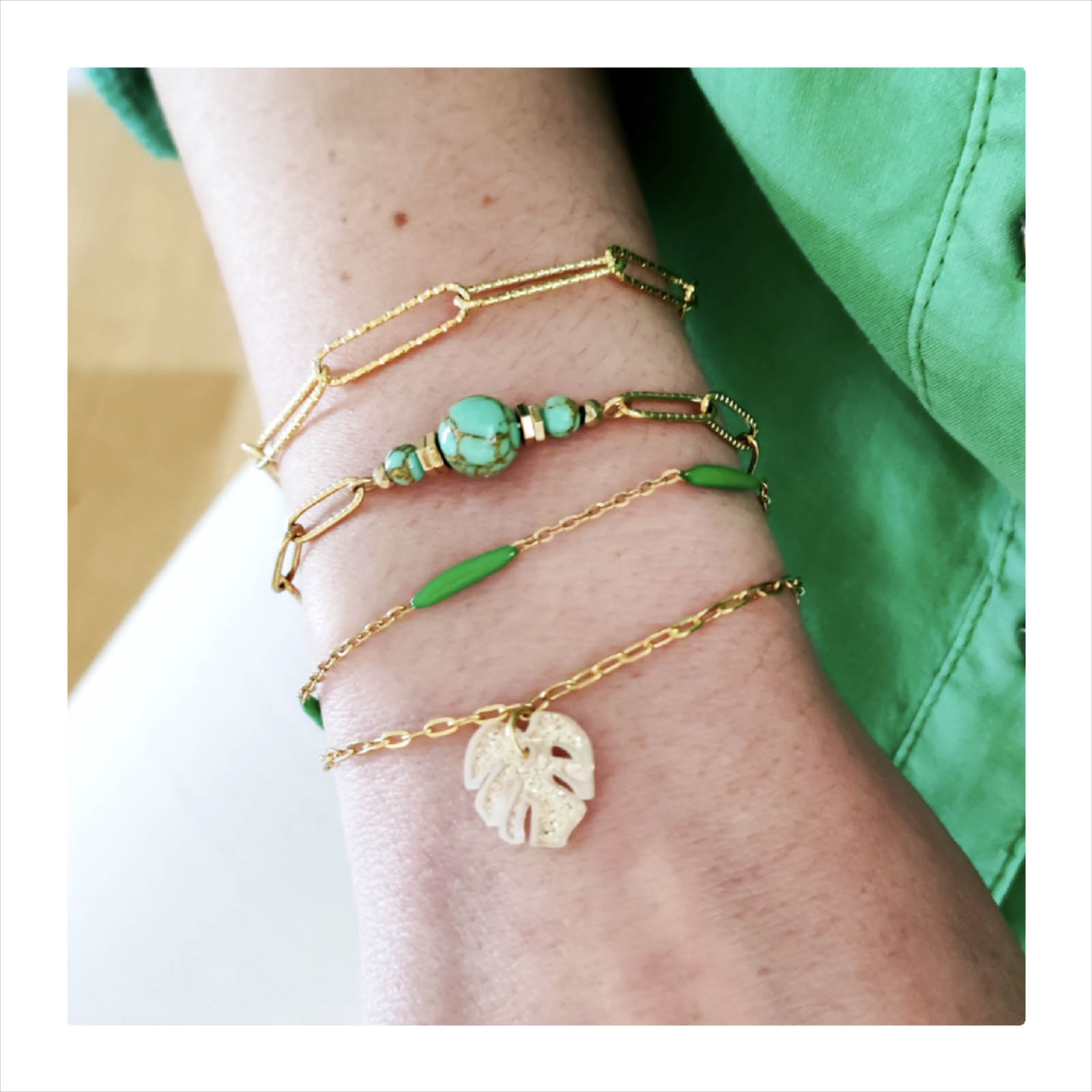 Un bracelet aux tons de vert pour apporter un peu de pep’s à votre tenue… Un bracelet élégant qui a de l’allure. Combinez-le à d’autres bracelets !
